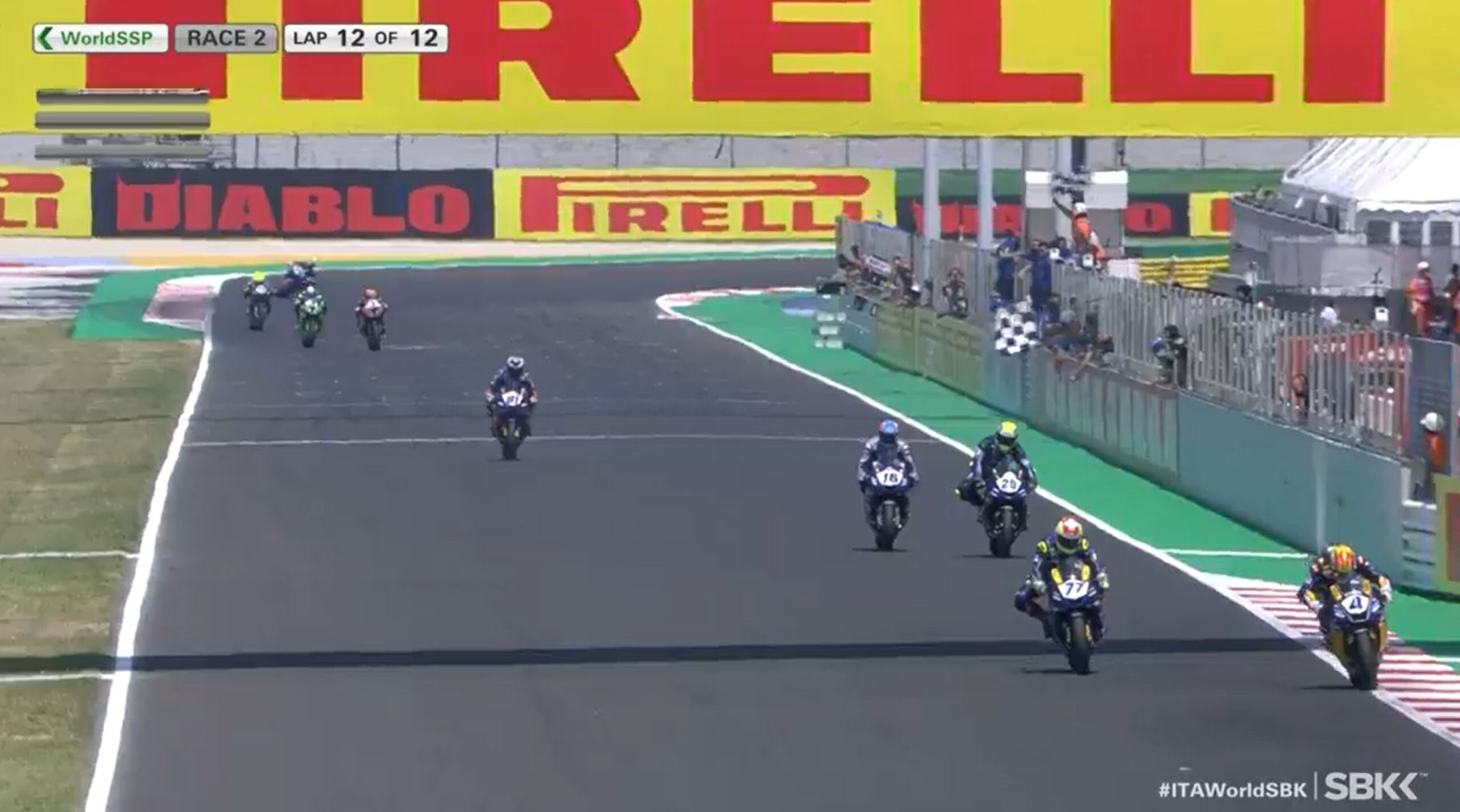 Balapan kembali di lanjutkan pada pukul 13.00 (Lokal Time) dengan posisi Re-Start sesuai dengan saat bendera merah dikibarkan. Dengan 12 putaran tersisa. Steven Odendaal (Evan Bros. WorldSSP Yamaha Team) memulai re-start  dari posisi 1 dan terus kuat memimpin sampai di garis finish. Tapi sebelumnya pada dua putaran sebelum finish Steven Odendaal mendapatkan Long lap penalty akibat exceeding track limit. tetapi belum dilakuakan sampai menyelesaikan balapan. dan memaksanya harus menyerahkan posisi pertamanya kepada Dominique Aegerter dan harus puas finish diurutan ke 4.