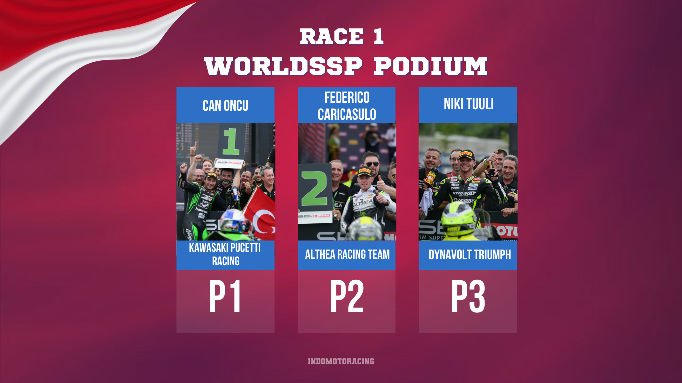Can Öncü juga mendapatkan selamat dari Juara dunia WorldSBK 6 kali, Jonathan Rea saat memasuki pitlane. Awal mulai balapan awan menurunkan sedikit hujan semua pembalap menggunakan ban slick dan Can Öncü berhasil membuat gap saat pembalap lain masih membaca kondisi grip, membuat jarak 3 detik menjadikannya mulus berada diposisi pertama selama 18 putaran. Kemenangan ini merupakan kemenangan pertamanya di WorldSPP dan menjadikannya termasuk 4 pembalap termuda yang bisa menang di ajang balap WorldSSP ini.
